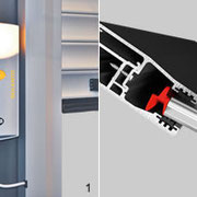 Blendkappensysteme mit Fixpunktlagerung (B1) oder mit Anrollsystem (B2) sowie mit Körperschalldämmung. Für die Außen- oder Innenmontage geeignet. B1 Tore gibt es mit ALUMINO 55- und 77-Profilen, B2 gibt es ausschließlich mit ALUMINO 77-Torprofilen.